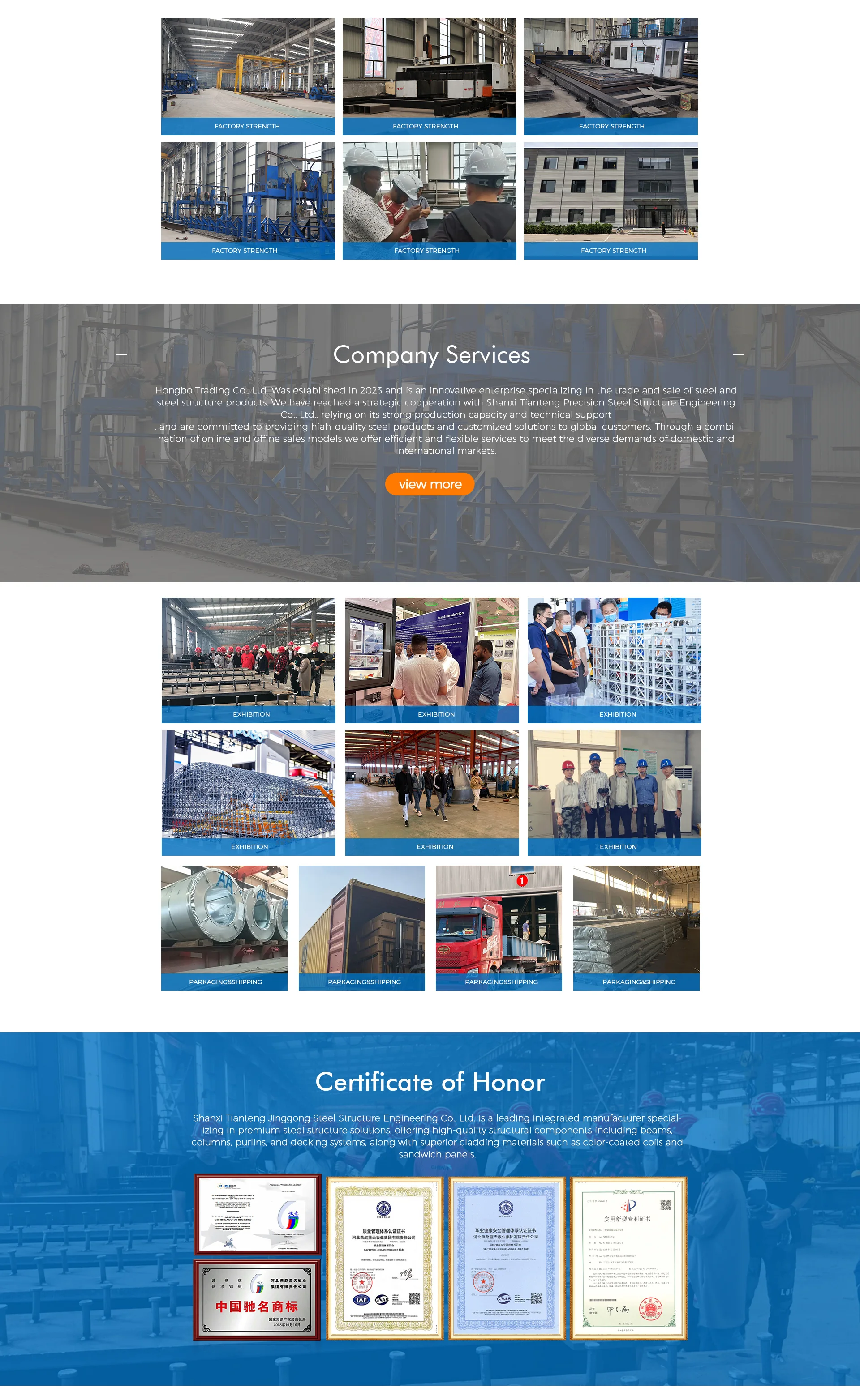 Productos principales:Placas medianas y pesadas, barras/hojas planas, estructuras de acero ligeras/pesadas, tablero de presión de acero de color, acero de viga en H